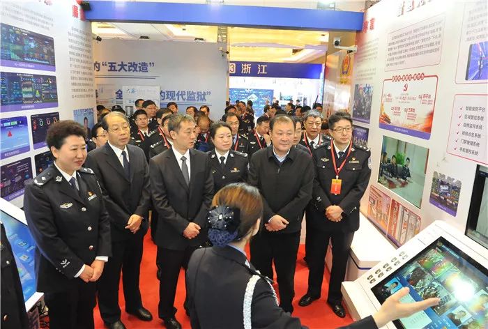 圖為司法部副部長劉志強參觀“智慧監獄示范單位”技術應用成果展并參觀考察座談交流。