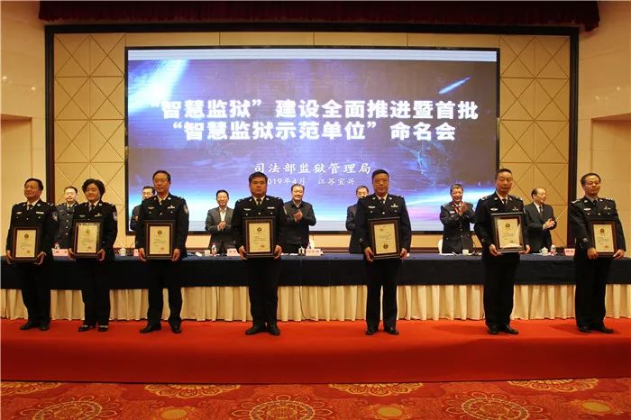 圖為“智慧監獄”建設全面推進會上為全國首批33個部級“智慧監獄示范單位”命名并頒發證書。