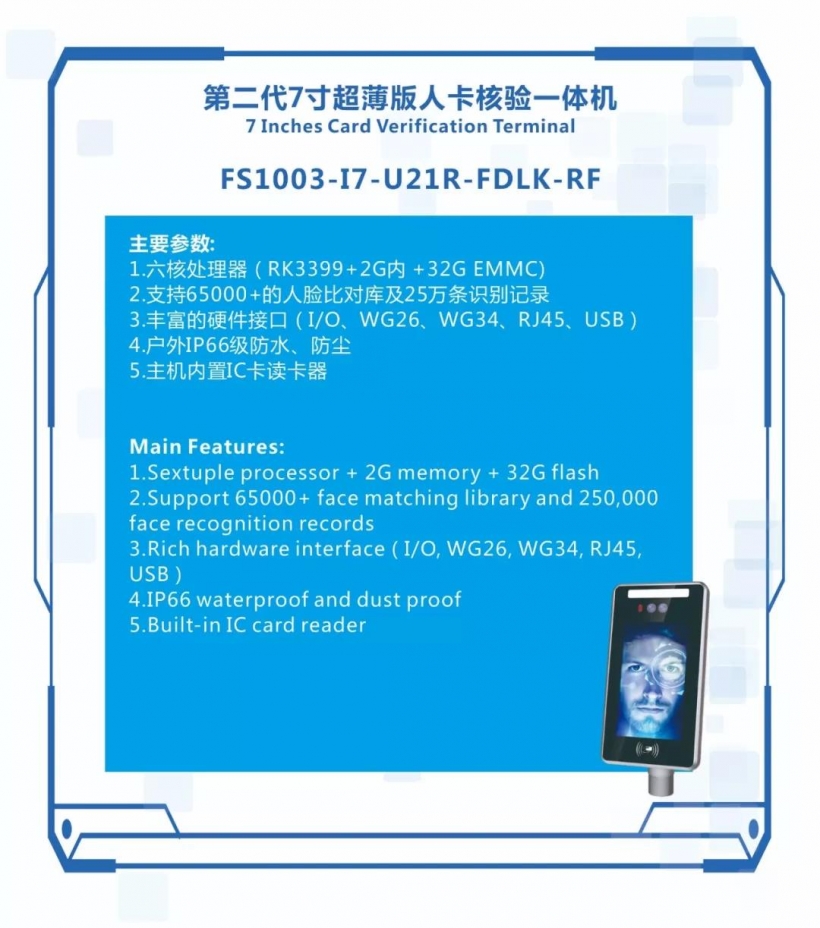 1、第二代7寸超薄版人卡核驗(yàn)一體機(jī)