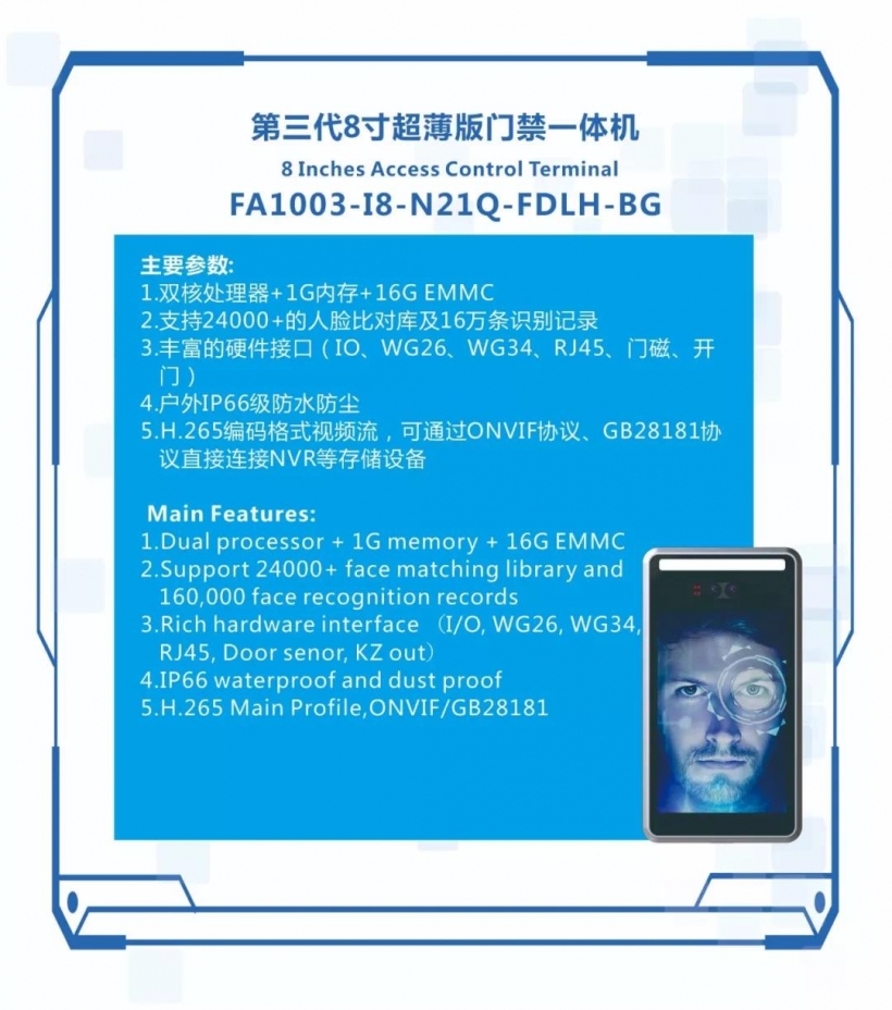 3、第二代8寸超薄版雙目活體人臉識(shí)別一體機(jī)