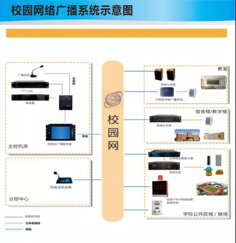 ★具有自動(dòng)音樂打鈴、定時(shí)節(jié)目播放、音頻實(shí)時(shí)采播,消防警報(bào),可以實(shí)現(xiàn)定時(shí)定點(diǎn)定區(qū)域定曲目播放,實(shí)現(xiàn)無(wú)人值守功能
