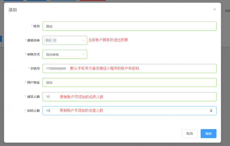 第六步:給當前賬戶添加用戶,用戶可以使用自己的賬戶密碼登錄微信小程序,添加成員