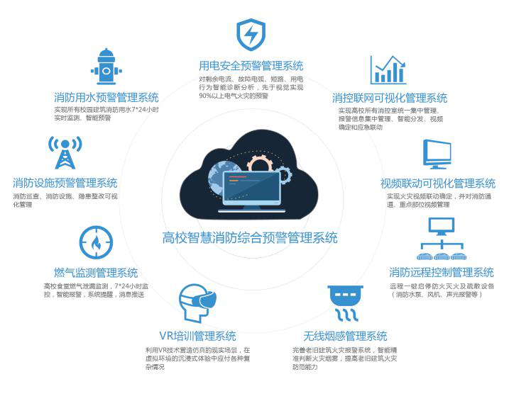中安云服智慧消防管理云平臺,采用“感、傳、知、用”等物聯網技術手段,綜合利用多種數據傳輸方式、大數據分分析處理等技術,通過互聯網、移動互聯網等通信網絡,對消防設施、器材、人員與人員工作等進行智能化感知、識別、定位與跟蹤,實時采集、傳遞和處理消防相關信息,通過信息處理、數據挖掘和態勢分析,為消防監督管理、預警和救援提供信息支撐,提高消防監督與管理效率,增強消防救援能力。